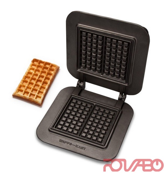 Сменные пластины для ребристых вафель к Thermocook®. Схожи с Брюссельскими, но тоньше и меньше. Зачастую обе вафли, одновременно выпеченные, подаются вместе. На 2 вафли по 153x80x19 мм. Выполнено из монолитного чугуна.