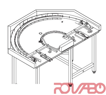 - 180° motorized curve for rack conveyor