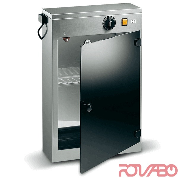 Made from AISI430 stainless steel. Chamber is closed by a smoked plexiglass door h.48 cm. Removable see-through plexiglass knives holder makes sanitation easier and allows sterilization without having to rotate the knives. Mercury vapour lamp with wire screen protection. A safety microswitch switches the lamps on when the door is opened and switches them off when it is closed. Number of lamps: 2x8 watt. Timer: 0/120 min. Knives capacity: No. 15. Max lenght of the blade of the knife: 430 mm.