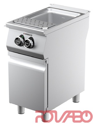 BOWL 342х308x300 mm in AISI 316 stainless steel with a capacity of 27L and rounded corners to facilitate cleaning and hygiene. Stainless steel top equipped with a tap for filling and topping up water controlled by an ergonomic knob. Built-in water drain. HEATING via element pack inside the bowl with 7.8kW cooking power adjustable using a switch and an ergonomic knob. SAFETY guaranteed by temperature control through manual reset safety limiter. EQUIPPED with false bottom, basket beater and hinged door, optional baskets and lid.