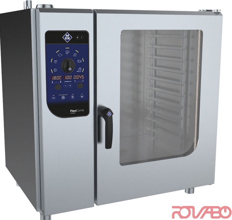 Housing of corrosion-resistant chromium-nickel steel. Capacity: 10xGN2/1; or 10 FlexiRack® (530x570 mm) due to which MKN oven is 50% more added value as compared to MKN GN1/1 combisteamers. Manual cooking: 6 types (soft steaming, steaming, express steaming, convection, combisteaming, regeneration). Operating modes: convection 30–250°C, steaming 30–130°C (incl. soft & express steaming), combisteaming 30–250°C. 100 cooking processes can be saved in up to 6 steps. Pros: auto-reverse fan operation - 5 fan speeds; PHIeco DynaSteam2 steam control for consistent, ideal food quality; multipoint core temperature probe – option (single-point core temperature probe as standard); ClimaSelect – climate control in 25 % steps; heat exchanger; cooking chamber door with insulated triple glazing; WaveClean® automatic cleaning system (cartridge) - option; integrated hand shower - option; integrated grease separation system without filter; USB interface; height adjustable stainless steel appliance feet; halogen cooking chamber lighting. Additional features: Ready2Cook preheating, cooling down, preparing ideal climate without opening the doors; Digital fan forced burner technology for gas appliances.