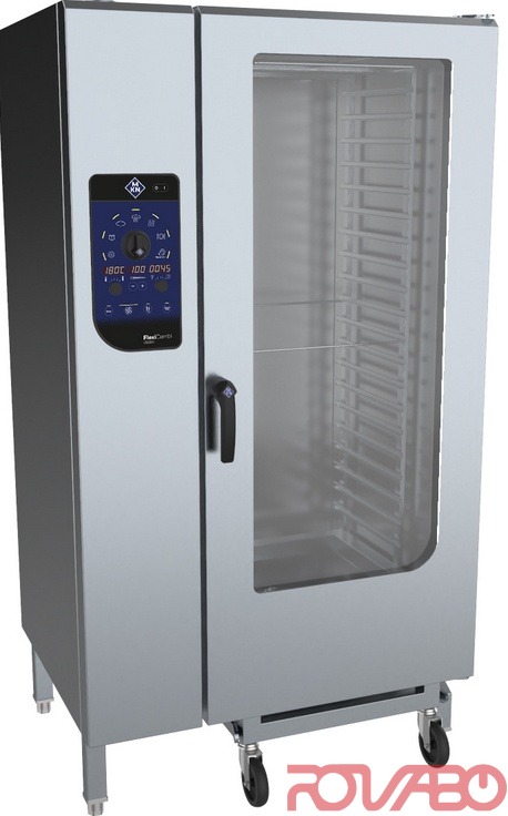 Housing of corrosion-resistant chromium-nickel steel. Capacity: 20xGN1/1; or 20 FlexiRack® (530x570 mm) due to which MKN oven is 50% more added value as compared to MKN GN1/1 combisteamers. Manual cooking: 6 types (soft steaming, steaming, express steaming, convection, combisteaming, regeneration). Operating modes: convection 30–250°C, steaming 30–130°C (incl. soft & express steaming), combisteaming 30–250°C. 100 cooking processes can be saved in up to 6 steps. Pros: auto-reverse fan operation - 5 fan speeds; PHIeco DynaSteam2 steam control for consistent, ideal food quality; multipoint core temperature probe – option (single-point core temperature probe as standard); ClimaSelect – climate control in 25 % steps; heat exchanger; cooking chamber door with insulated triple glazing; WaveClean® automatic cleaning system (cartridge) - option; integrated hand shower; integrated grease separation system without filter; USB interface; height adjustable stainless steel appliance feet; halogen cooking chamber lighting. Additional features: Ready2Cook preheating, cooling down, preparing ideal climate without opening the doors; Digital fan forced burner technology for gas appliances.