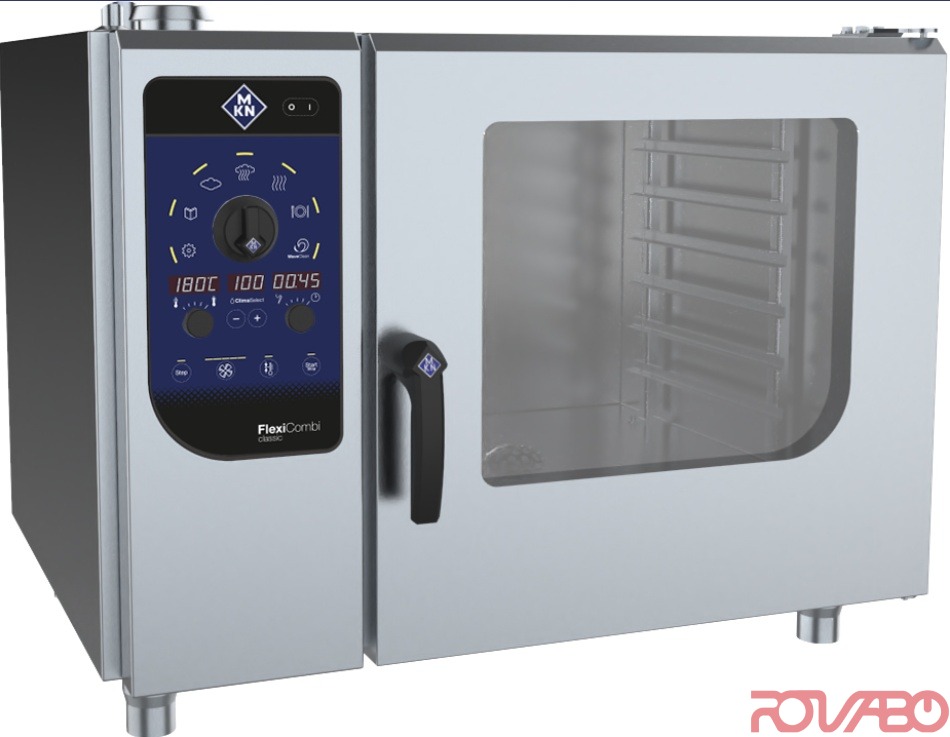 Housing of corrosion-resistant chromium-nickel steel. Capacity: 6xGN2/1; or 6 FlexiRack® (530x570 mm) due to which MKN oven is 50% more added value as compared to MKN GN1/1 combisteamers. Manual cooking: 6 types (soft steaming, steaming, express steaming, convection, combisteaming, regeneration). Operating modes: convection 30–250°C, steaming 30–130°C (incl. soft & express steaming), combisteaming 30–250°C. 100 cooking processes can be saved in up to 6 steps. Pros: auto-reverse fan operation - 5 fan speeds; PHIeco DynaSteam2 steam control for consistent, ideal food quality; multipoint core temperature probe – option (single-point core temperature probe as standard); ClimaSelect – climate control in 25 % steps; heat exchanger; cooking chamber door with insulated triple glazing; WaveClean® automatic cleaning system (cartridge) - option; integrated hand shower; integrated grease separation system without filter; USB interface; height adjustable stainless steel appliance feet; halogen cooking chamber lighting. Additional features: Ready2Cook preheating, cooling down, preparing ideal climate without opening the doors; Digital fan forced burner technology for gas appliances.