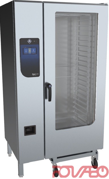 Housing of corrosion-resistant chromium-nickel steel. Operation. MagicPilot Touch & Slide operating concept, capacitive touch system, hardened glass. Capacity: 20xGN1/1; or 20 FlexiRack® (530x570 mm) due to which MKN oven is 50% more added value as compared to MKN GN1/1 combisteamers. autoChef - more than 250 automatic cooking processes (10 categories); more than 350 cooking processes can be saved in up to 20 steps. Manual cooking: 12 types (soft steaming, steaming, express steaming, convection, combisteaming, perfection, LT low temperature, Delta-T, humidification, baking, rest function, sous vide cooking). Operating modes: convection 30–300° C, steaming 30–130°C (incl. soft & express steaming), combisteaming 30–250°C. Pros: auto-reverse fan operation - 5 fan speeds; PHIeco DynaSteam2 steam control for consistent, ideal food quality; SES – Steam Exhaust System; multipoint core temperature probe; RackControl – multiple timers; ClimaSelect plus – climate control in 10 % steps; heat exchanger; hygienic cooking chamber door with closed triple glazing and integrated led lighting; WaveClean® automatic cleaning system (cartridge); integrated hand shower; integrated grease separation system without filter; USB interface; height adjustable stainless steel appliance feet. Special functions: GreenInside – Consumption display (energy & water); PerfectHOLD with SmartCoolDown; Barcode scanning without scanner (option); CombiDoctor – self-diagnosis programme; Time2Serve; VideoAssist – the virtual chef; Favourites – directly accessible in Favourites programme; ChefsHelp – information steps as instructions/help for the user; QualityControl – automatic quantity detection; optional IPX 6 protection against strong jets of water. Additional features: Ready2Cook preheating, cooling down, preparing ideal climate without opening the doors; RackControl 2 – multiple timers.