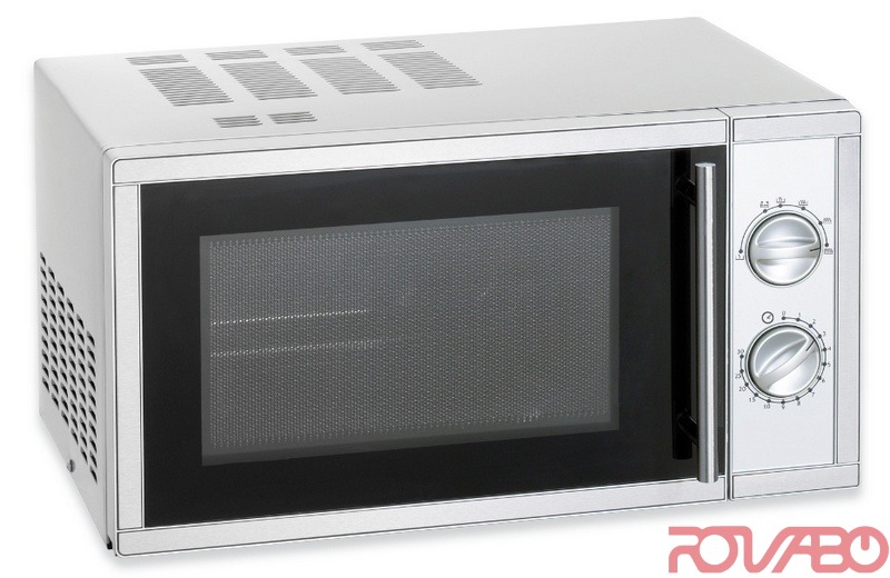 Made of stainless steel. Glass rotary plate Ø270 mm. Electronic control unit, toggle. Chamber dimensions: 315x290x200 mm. Interior lighting. Number of output levels: 6. Functions: defrosting, heating. Manual timer up to 30 minutes. Microwave output: 0.9 kW. 1 magnetron. Not for continious commercial usage.
