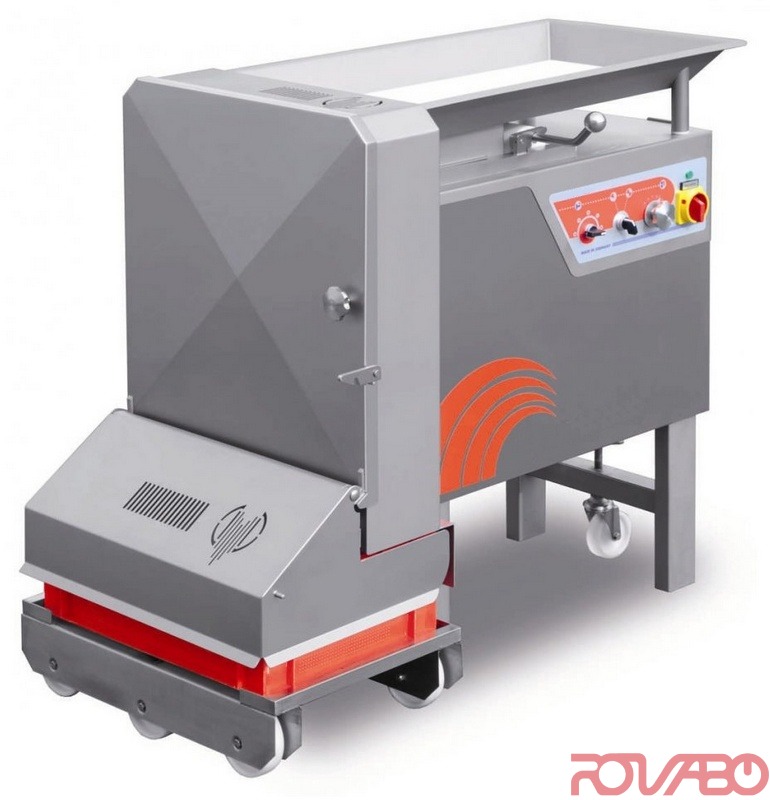 Pagaminta iš nerūdijančio plieno. Našumas - 1100 kg/val. Grotelių skerspjūvis, 90x90 mm. Pjovimo ilgis, 0 - 45 mm. Kameros išmatavimai, 96x96x310 mm. Pusiau automatinė mašina. Uždarius dangtį, įrengimas suspaudžia produktą ir pradeda pjaustyti kubeliais arba šiaudeliais. Taisyklinga kubelio forma pasiekiama dėka unikalaus keturmačio išankstinio suspaudymo, kuris labai lengvai išlaiko šviežios mėsos formą tada, kai ji pjaustoma ilgomis grotelių ašmenimis. Apdirbimo temperatūra, - 3° C. Ergonomiška rankenėlė. Komplekte: pjaustymo lentelė, standartinis grotelių komplektas, grotelių matmenys pasirinkimui; peilis apipjovimui.