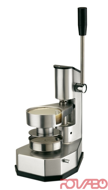 Anodised aluminium structure and AISI 304 stainless steel plates. Easy to clean. Patty ø100 mm ∼ 120 gr. Supplied with a package of cellophane food wrap.