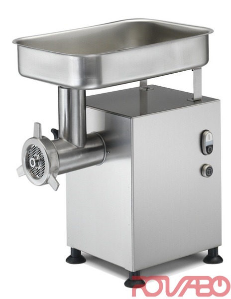 Stainless steel counter meat mincer for medium production levels. A sturdy, reliable machine. Easy to clean. Space-saving design. For food stores and catering. Manufactured from AISI 304 stainless steel, AISI 304 stainless steel feedbox and external head. Easy to detach for cleaning. Unger S3 version: 3 pieces for 22 model (Ø 82). Ventilated motor. Forward running and stop with N.V.R. The machine complies with CE regulations on hygiene and safety and with specific regulations for meat grinders. Head 22. Output 250 kg/h (4,2 kg/min.) On request: Aluminium head, Special voltages, 60 Hz.