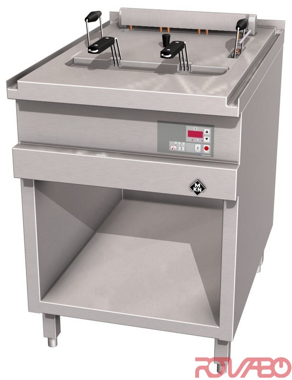 Korpusas pagamintas iš nerūdijančio plieno (304). Suvirinta be siūlių viršutinė plokštė su šoniniais nutekėjimo grioveliais. Lengvai valoma. Cilindriniai kaitinimo elementai pagaminti iš nerūdijančio plieno. Aušinimo zona. Vonios išmatavimai: 400x400x235 mm. Elektroninis temperatūros reguliavimas "EcoControl". Įrenginys paruoštas prijungimui prie energiją optimizuojančios sistemos. Pagrindinis jungiklis, termostatas, ventiliatorius, temperatūros apsaugos termostatas, kontrolinė lemputė, apsaugos klasė IPX5. Komplekte: dangtis, vonelė aliejaus valymui, 2 krepšiai.