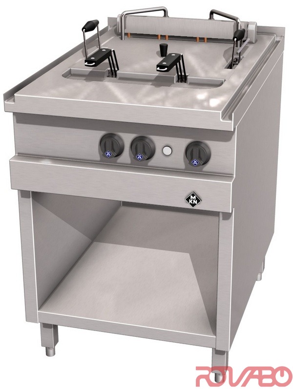 Korpusas pagamintas iš nerūdijančio plieno (304). Suvirinta be siūlių viršutinė plokštė su šoniniais nutekėjimo grioveliais. Lengvai valoma. Cilindriniai kaitinimo elementai pagaminti iš nerūdijančio plieno. Aušinimo zona. Vonios išmatavimai: 400x400x235 mm. Krepšelių pakelėjas su laikmačiu. Įrenginys paruoštas prijungimui prie energiją optimizuojančios sistemos. Pagrindinis jungiklis, termostatas, ventiliatorius, temperatūros apsaugos termostatas, kontrolinė lemputė, apsaugos klasė IPX5. Komplekte: dangtis, vonelė aliejaus valymui, 2 krepšiai.
