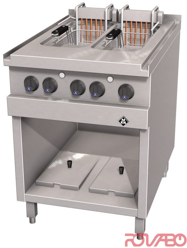 Korpusas pagamintas iš nerūdijančio plieno (304). 2 kepimo vonios talpinančios 12,5 litrų. Suvirinta be siūlių viršutinė plokštė su šoniniais nutekėjimo grioveliais. Lengvai valoma. Cilindriniai kaitinimo elementai pagaminti iš nerūdijančio plieno. Aušinimo zona. Vonios išmatavimai: 180x400x235 mm. Krepšelių pakelėjas su laikmačiu. Įrenginys paruoštas prijungimui prie energiją optimizuojančios sistemos. Pagrindinis jungiklis, termostatas, ventiliatorius, temperatūros apsaugos termostatas, kontrolinė lemputė, apsaugos klasė IPX5. Komplekte: 2 dangčiai, 2 vonelės aliejaus valymui, 2 krepšeliai.