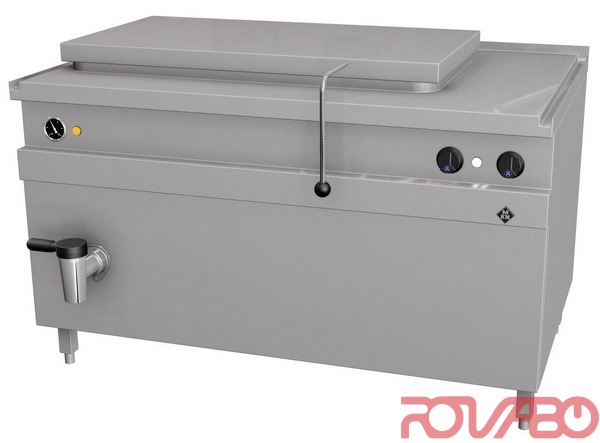 Inner kettle 1020 x 540 mm, 535 mm deep, for 6 x GN 1/1 – 200 mm deep. Heat up time 43 min. Inner kettle made completely of extremely corrosion-resistant chrome nickel steel. Double jacketed kettle with separate, integrated and maintenance-free VAPRO steam generator for short heating up times and low energy and water consumption as well as highly efficient. Short heating up times with VAPRO pressure steam system. 3 cooking programmes (light simmering, medium boiling and strong boiling). Main switch, power control switch, thermostat, safety temperature thermostat, control lamps, tubular heating elements, pilot heating elements, contactor, water solenoid valve, water level regulator with electrode, mains connection, IPX 5. Extra large drain cock 2" of CrNi steel, 1 drain filter.