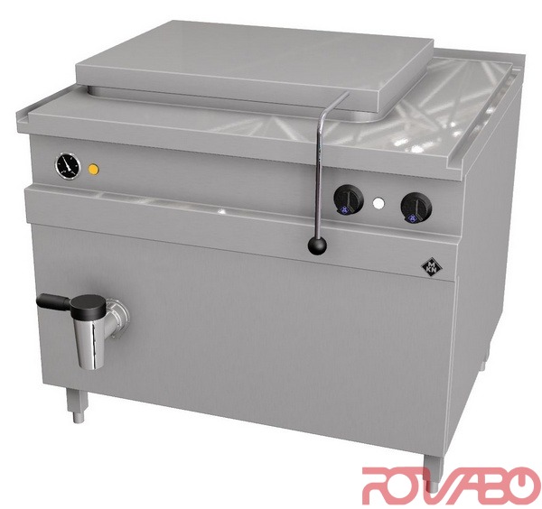Inner kettle 700 x 540 mm, 535 mm deep, for 4 x GN 1/1 – 200 mm deep. Heat up time 41 min. Inner kettle made completely of extremely corrosion-resistant chrome nickel steel. Double jacketed kettle with separate, integrated and maintenance-free VAPRO steam generator for short heating up times and low energy and water consumption as well as highly efficient. Short heating up times with VAPRO pressure steam system. 3 cooking programmes (light simmering, medium boiling and strong boiling). Double-walled hinged lid with springloaded swivel joint. Main switch, power control switch, thermostat, safety temperature thermostat, control lamps, tubular heating elements, pilot heating elements, contactor, water solenoid valve, water level regulator with electrode, mains connection, IPX 5Extra large drain cock 2" of CrNi steel, 1 drain filter.
