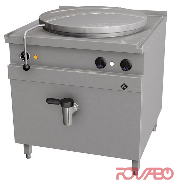 Housing made completely of chrome nickel steel. Tightly welded top plate with lateral drain channels for easy cleaning. Low energy and water consumption but highly efficient due to a double jacketed kettle with separate VAPRO steam generator. Short heating up times with VAPRO pressure steam system. 3 cooking programmes as standard (light simmer, medium simmer and strong boil). Because of the steam generator with utility water monitor and automatic water level regulation the appliance is constantly ready for use. Double walled hinged lid with spring loaded swivel joints as standard. Supplied ready for connection to a power optimising system. Main switch, power switch, thermostat, temperature monitor, control lamps, tubular heating elements, pilot heating elements, contactor, water solenoid valve, water level regulator with electrode, pressure regulator, mains connection, IPX6. Accessories: Extra large drain cock 1½" of CrNi steel, 1 drain filter, 4 appliance feet, 1 Mixer tap with outlet R¾“ (DN 20) (½" cold and warm water supply required).
