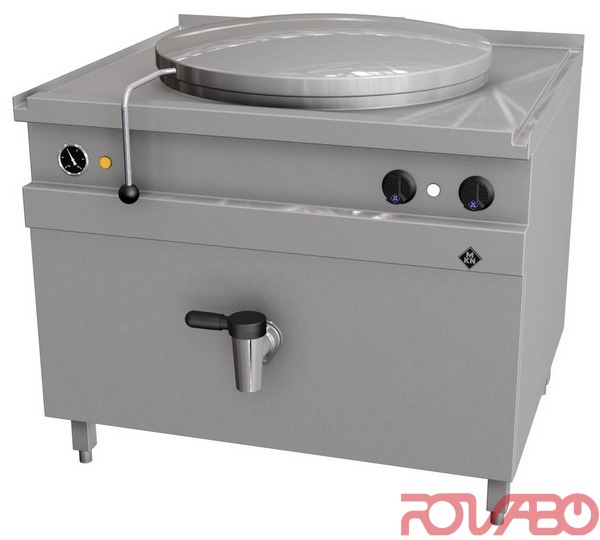 Housing made completely of chrome nickel steel. Tightly welded top plate with lateral drain channels for easy cleaning. Low energy and water consumption but highly efficient due to a double jacketed kettle with separate VAPRO steam generator. Short heating up times with VAPRO pressure steam system. 3 cooking programmes as standard (light simmer, medium simmer and strong boil). Because of the steam generator with utility water monitor and automatic water level regulation the appliance is constantly ready for use. Double walled hinged lid with spring loaded swivel joints as standard. Supplied ready for connection to a power optimising system. Main switch, power switch, thermostat, temperature monitor, control lamps, tubular heating elements, pilot heating elements, contactor, water solenoid valve, water level regulator with electrode, pressure regulator, mains connection, IPX6. Accessories: Extra large drain cock 1½" of CrNi steel, 1 drain filter, 4 appliance feet, 1 Mixer tap with outlet R¾“ (DN 20) (½" cold and warm water supply required).