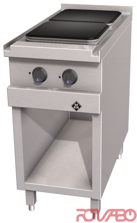2 kaitlenčių, 1 x 2,5 ir 1 x 4 kW. Kaitlentės išmatavimai, 300 x 300 mm. Korpusas pagamintas iš nerūdijančio plieno (304). Sandariai suvirinta viršutinė viryklės plokštė su skersiniais nutekėjimo grioveliais. 7 padėčių jungiklis, apsaugos klasė IPX5.