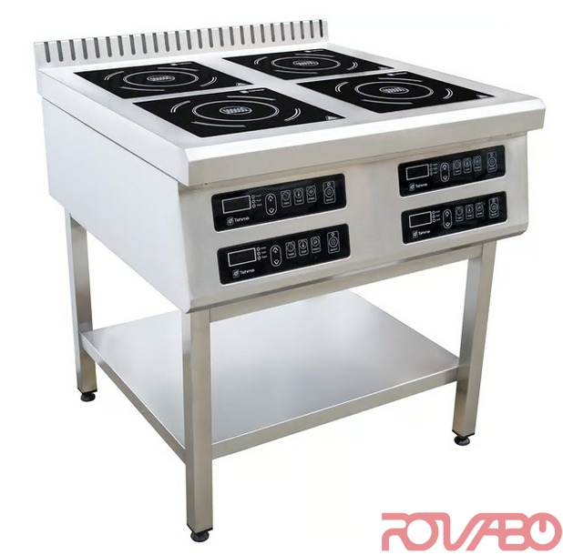 13 veikimo režimų. 24 val. laikmatis. 300x300 mm kaitvietės, ant kurių galite pastatyti didelę pramoninę keptuvę iki 25 l. Tolygus šilumos paskirstymas, optimizuotos energijos sąnaudos. Korpusas pagamintas iš aukštos kokybės maistinio nerūdijančio plieno, užtikrinančio patvarumą ir higieną, paviršius – iš grūdinto keraminio stiklo, kuris yra labai atsparus mechaniniams pažeidimams. Padėjus puodą ar keptuvę ant indukcinės kaitlentės, energija eikvojama metalo kaitinimui, todėl elektros energijos suvartojimas sumažėja 50 %. Dėl to indai įkaista greičiau, o gaminimas trunka trumpiau. Saugumas: degiklio kraštai neįkaista, todėl išvengiama nudegimų; aplinka lieka neįkaitusi. Nėra nemalonaus kvapo, lengva valyti, ergonomiška. Papildomi lengvai valomi 3 sluoksnių aliuminio filtrai. Ištraukiamieji ventiliatoriai kiekvienam degikliui. Apsauga virš valdymo skydelių.