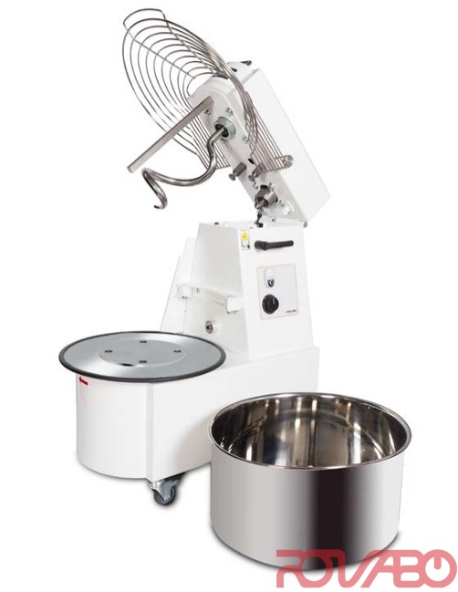 The bowl, spiral, dough breaker and the protection grid are made in stainless steel respecting the health rules. The spiral dough mixer with rising top has a pneumatic system for the controlled overturning of the top, chain transmission system and gear motor in oil bath ensuring strength and quietness in time. Bowl dimensions: Ø450х260h. Three phase 2 speed.