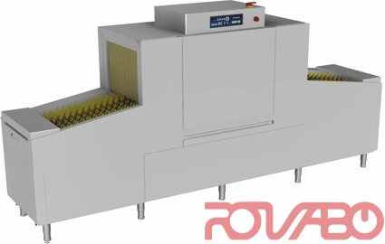 Korpusas ir plovimo talpos iš nerūdijančio plieno AISI 304, 12/10 storio. Lengvai nuimamos ir keičiamos nerūdijančio plieno plovimo ir skalavimo sparnuotės. Nerūdijančio plieno siurbliai su termine apsauga. Juostinis konvejeris su nerūdijančio plieno grandinėmis ir nailoniniu velenu, siekiant sumažinti triukšmą. Dešininė arba kairinė versija. Visiškai automatizuota sistema. Dviguba juosta su izoliacija. Izoliuotas boileris. Plovimo talpa suapvalintais kraštais. Durys su saugos įtaisu. Reguliuojamos kojelės. Automatinis talpos pripildymas. Automatinis vandens išleidimas paspaudus mygtuką. Elektroninis temperatūros rodmenų ekranas, termometrai plovimo ir skalavimo vandens temperatūros reguliavimui, laikmatis. Talpų ir siurblio filtrai. Siurblio galingumas - 2,2 kW, plovimo talpos kaitinimo elementų galingumas - 12 kW, boilerio galingumas - 18 kW. Sunaudojamo vandens kiekis/ val. - 300 l. Užuolaidos priekyje ir gale, apsaugančios nuo garų ir vandens taškymosi. Pasvirę pakrovimo ir iškrovimo stalai. Stalai indų laikymui. Avarinis mygtukas (ir lemputė), paleidimo ir sustabdymo mygtukai. Plovimas - 4 viršutinės ir 4 apatinės plovimo sparnuotės, skalavimas - 1 viršutinė ir 1 apatinė skalavimo sparnuotės. Plovimo temperatūra - 60°C, skalavimo - 85-90°C. Skalavimo srauto matuoklis, skaitmeninis skalavimo vandens termostatas. Eco skalavimo sistema, skirta sumažinti vandens, energijos ir ploviklio suvartojimą. Kaitinimo elementų apsauga, automatinis konvejerio stabdymas patekus svetimkūniams, žemos įtampos valdymo grandinė (24V) didesniam saugumui. Elektroninė valdymo panelė: žemos įtampos mygtukai, skirtingų talpų temperatūras rodantis ekranas, PCB plokštės programavimas, įspėjamoji lemputė „durelės atidarytos“ ir kt., vandens pripildymo aliarmas, srauto matuoklio pavojaus signalas (jei yra), signalizacija apie boilerio užpildymą, greičio pasirinkimo mygtukas; džiovinimas, automatinis laikmatis ir lemputė (jei yra); skalavimas; kasetės įvažiavimo lemputė (jei yra); plovimo talpos vandens lygis, techninės priežiūros operacijų programavimas, indaplovės naudojimo ir eksploatavimo trukmė. Funkcija „SERVICE“ leidžia užprogramuoti priežiūros veiksmus. Valdymo panelės apsaugos lygis - IP55, plovimo mašinos - IP55, todėl jos negalima plauti tiesiogine aukšto slėgio vandens srove. Priedai: 1 universali kasetė, 2 stalo įrankių kasetės.